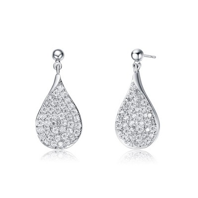 Elegant White Gold Plated Raindrop Pear Dangle Earrings with French Pave Cubic Zirconia for a Dazzling and Refined Look