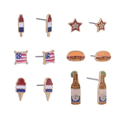 Hallmark 6 pack 4th of July BBQ Theme Stud Earring Set