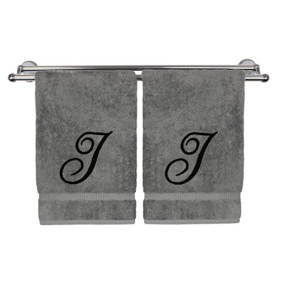 BC BARE COTTON Monogrammed Hand Towel, 100% Turkish Cotton - Set of 2 - Gray - Black Script
