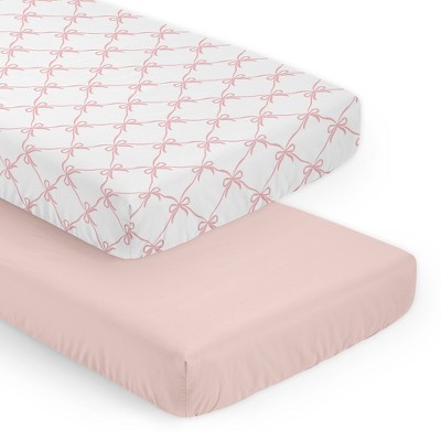 Sweet Jojo Designs Girl Fitted Crib Sheets Set Ballerina and Ballet Bows Pink and White 2pc