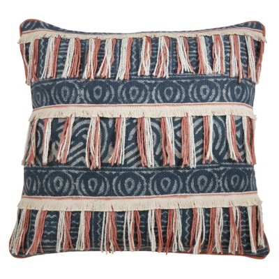 Saro Lifestyle Block Print Embroidered Fringed Down Filled Pillow