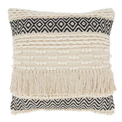 18"x18" Crafted Comfort Zig Zag Tassel Square Throw Pillow Black - Saro Lifestyle