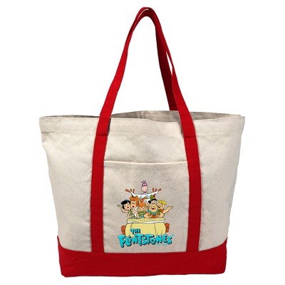 The Flintstones Logo Canvas Tote Bag With External Pocket, Reusable Shoulder Bag for Shopping, School, Beach, Red