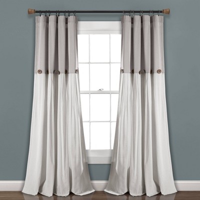 Lush Décor Extra Long Linen Button Window Curtain Panel - Off White - 100 inch Long x 84 inch Wide