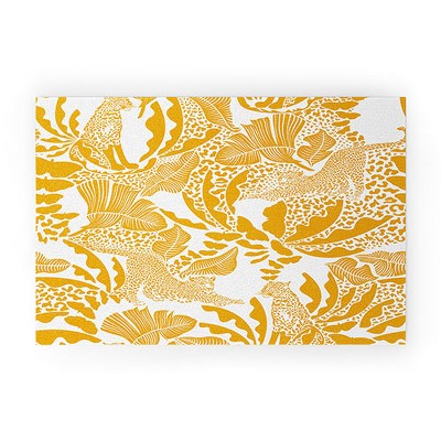 evamatise Surreal Jungle in Bright Yellow Looped Vinyl Welcome Mat - Society6
