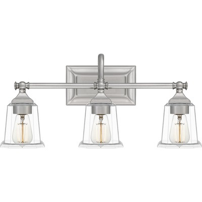 DORESshop 24 in. 3-Light Industrial Brushed Nickel Vanity Light Fixtures for Bathroom with Clear Glass Shades