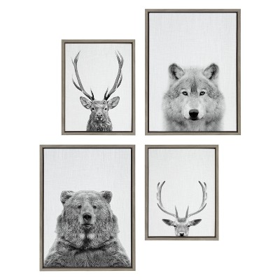 Kate & Laurel All Things Decor (Set of 4) Sylvie Deer Wolf Bear European and Cervus Elaphus Red Deer Wall Arts by Simon Te of Tai Prints