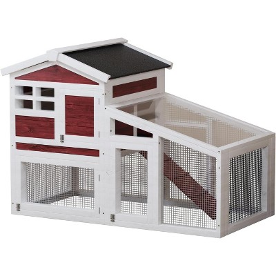 2-Story Rabbit Hutch Outdoor, Small Chicken Coop Wooden with Pull-Out Tray & Ramp for Bunnies, Bunny Cage Indoor with Waterproof Roof, Poultry Cage