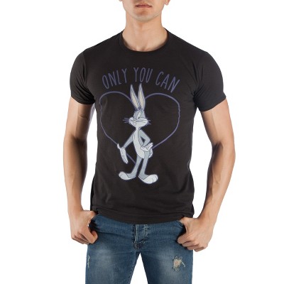 Looney Tunes Cartoon Bugs Bunny Men's Black Short Sleeve Graphic Shirt-