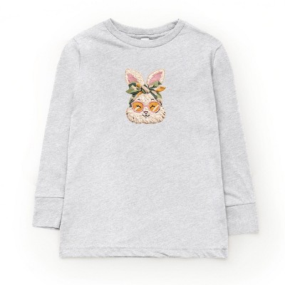Boys' - Instant Message - Scandinavian Bunny With Flowers Long Sleeve Graphic T-Shirt