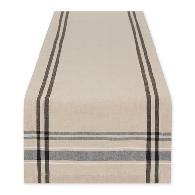 Design Imports French Stripe Table Runner, Taupe/Black, 14X72"