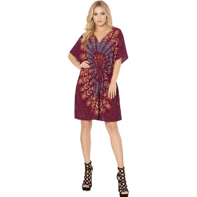 LA LEELA Women's Beachwear Swimsuit Coverups for Women Summer Swim Beach Dress Cover Ups for Women Bathing Suit Cover-up Duster 2X-3X Red,Peacock