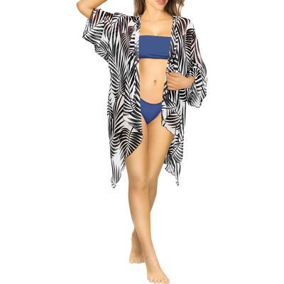 HAPPY BAY Women's Open Front Summer Tropical Beach Loose Casual Duster Tops Beachwear Duster Cardigan Cover Up Dusters for Women One Size Black, Palm