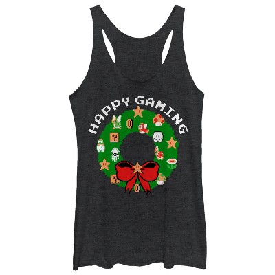 Women's Nintendo Christmas Happy Gaming Wreath Racerback Tank Top