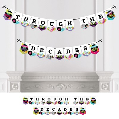 Big Dot of Happiness Through the Decades Garland Banner, 50s, 60s, 70s, 80s, & 90s Party Decor, Throwback Party Banner, 30 Feet of Cord, 15