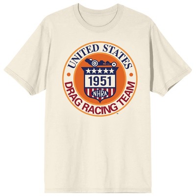 National Hot Rod Association U.S. Drag Racing Circle Logo Adult Natural Crew Neck Short Sleeve T-shirt