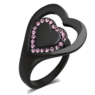 Slickblue Valentine’s Day Inspired Double Heart Ring, IP Black Stainless Steel, Synthetic Rose Crystals,Women's size 5–10