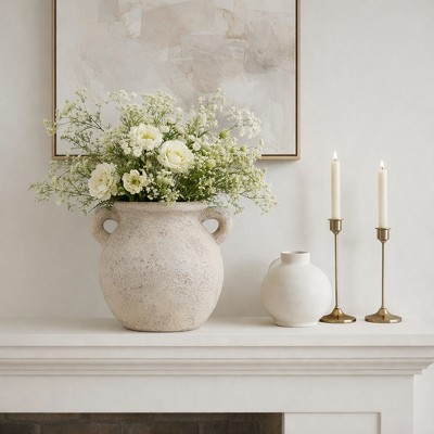 Terracotta Double Handle Vase for Living Room Decor - Minimalist Flower Vase for Home Accents, Bedroom Bedside, or Office Space - 12", Ivory