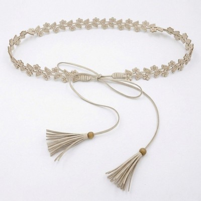 Alilang Women's Floral Cutout Waist Belt Tie Closure Adjustable Faux Leather Hip Belt Boho Style Accessory - Light Beige