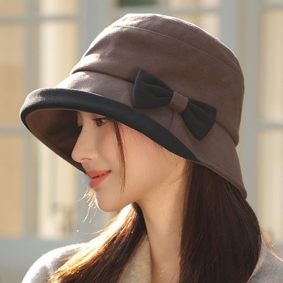 Anna-Kaci Womens Warm Plaid Roll Brim Bucket Hat with Decorative Side Bow