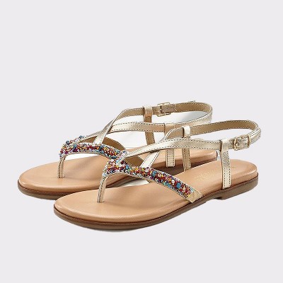 bebe Flat Dress Sandals Women's Embellished Strappy Sandals with Logo Rivet