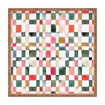 Ninola Design Watercolor Checker Yuletide Bamboo Tray - Deny Designs