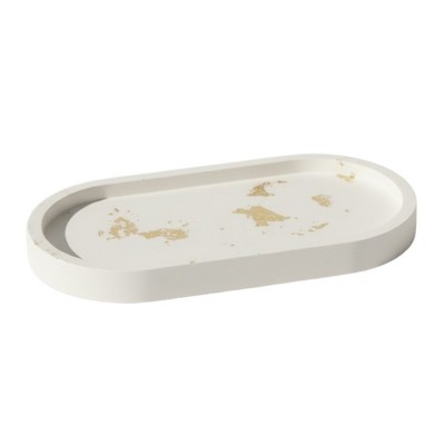 HomeRoots 7" White And Gold Resin Handmade Oval Trinket Tray