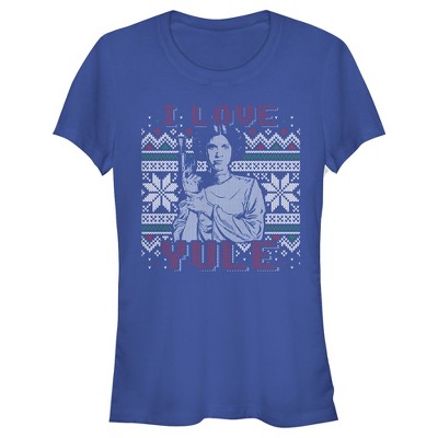 Juniors Womens Star Wars Ugly Christmas Leia I Love Yule T-Shirt