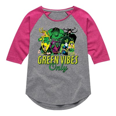 Girls' - Marvel - St. Patrick's Day Green Vibes Only Shirt Tail Raglan Graphic T-shirt