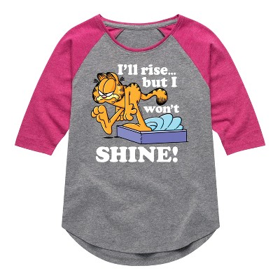 Girls' - Garfield - Rise But Won't Shine Shirt Tail Raglan Graphic T-shirt