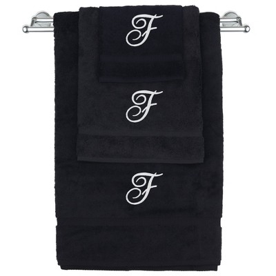BC BARE COTTON Monogrammed Towel Set, Personalized Gift, Set of 3 - White - Black Block