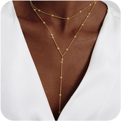 Lariat Gold Necklace for Women: Dainty 14K Gold Plated/Silver Y-Shaped Beaded Drop Chain, Trendy Gift