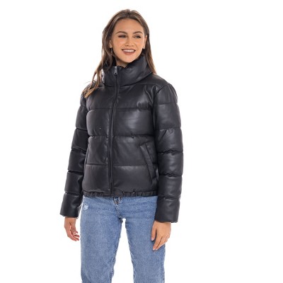 Women's Faux Leather Puffer Jacket, Puffy Coat - S.E.B. By SEBBY