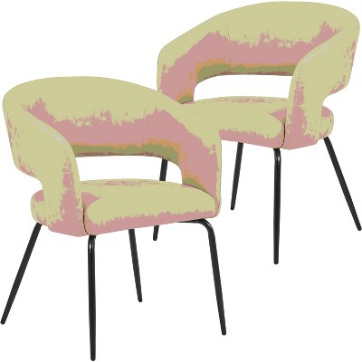 LeisureMod Dining Chair Upholstered in Velvet/Leather with Open Curved Backrest and Powder-Coated Iron Legs Gavin Collection Set of 2
