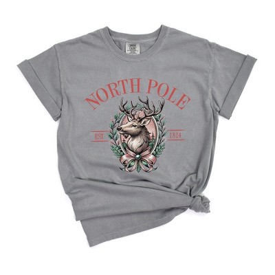 Simply Sage Market Women's North Pole Reindeer Oval Wreath Short Sleeve Garment Dyed Tee