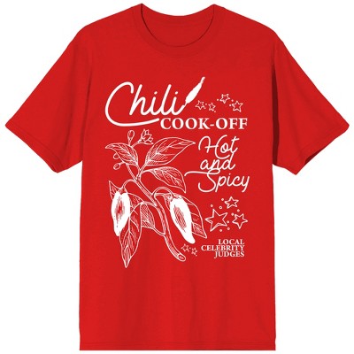 Chili Cookoff White Lettering, Stars and Stick w/ Leaves Silhouette on Red Short Sleeve Adult T-Shirt
