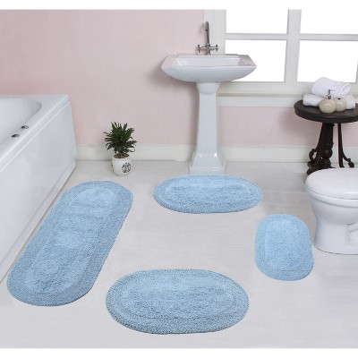 Double Ruffle Bathroom Rugs Set, Washable Rug, Extra Soft and Absorbent bath Rug, Kitchen Mat, Bath Mat Set,Non-Slip, 4 Pcs Set with Runner, Blue