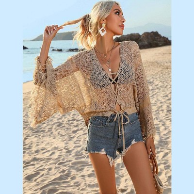 Women Swimsuit Crochet Cover Up Summer Swim Bathing Suit Swimwear Mesh Knit Tassel Pool Beach Vacation