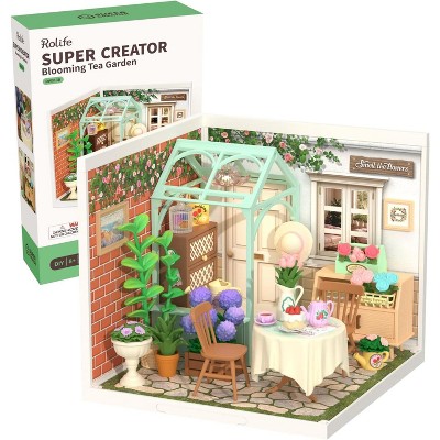 Rolife Blooming Tea Garden Super Creator-DIY Plastic Miniature House for Adults, Mini Blocks Model Kit Building Set
