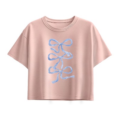 Girls' - Instant Message - Blue Bows Short Sleeve Boxy Graphic T-Shirt