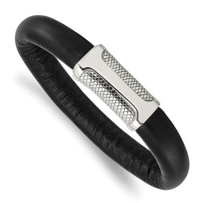 Steeltime Men's stainless steel and black rubber bracelet