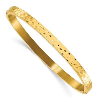 Chisel Stainless Steel Polished and Hammered Yellow IP-plated Bangle