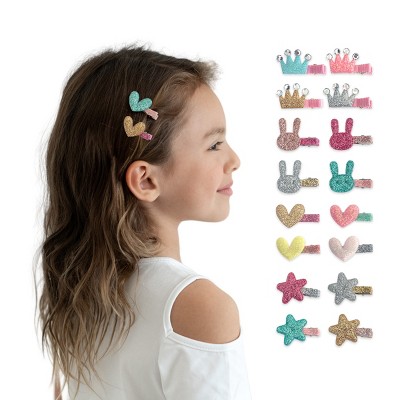 Summer Crystal - Glitter Mini Hair Clips – Assorted Colors Random Selection - 16 Pack