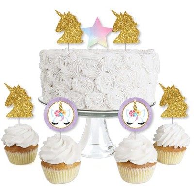 Big Dot of Happiness Rainbow Unicorn - Dessert Cupcake Toppers - Magical Unicorn Baby Shower or Birthday Party Clear Treat Picks - Set of 24