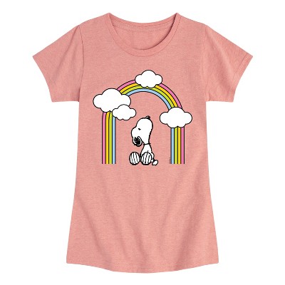 Girls' - Peanuts - Snoopy Looking Up Rainbow Fitted Short Sleeve Graphic T-Shirt