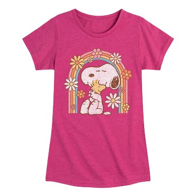 Girls' - Peanuts - Be Happy Rainbow Fitted Short Sleeve Graphic T-Shirt