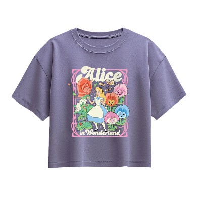 Girls' - Alice in Wonderland - Alice and Flowers Short Sleeve Boxy Graphic T-Shirt
