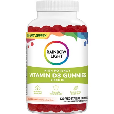 Rainbow Light High Potency Gluten Free Vitamin D3 Gummies, Peach, 2000 IU, 120 Count
