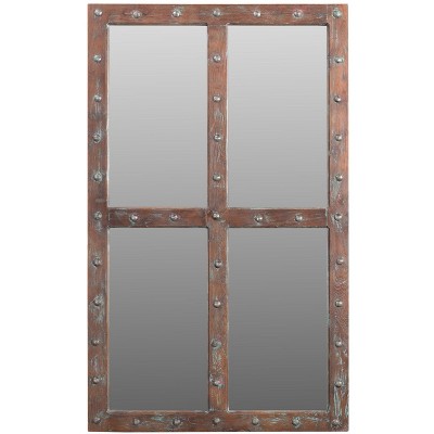 HomeRoots 60" Wood Brown Rustic Solid Wood Window Pane Framed Accent Mirror