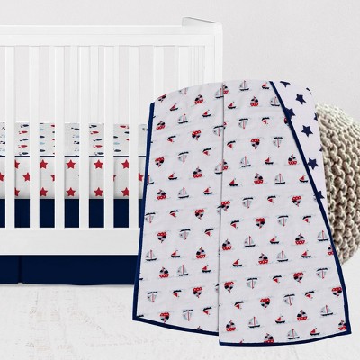 Bacati - Boys Nautical Muslin Whales Boat Red Blue Navy 3 pc Crib Bedding Set